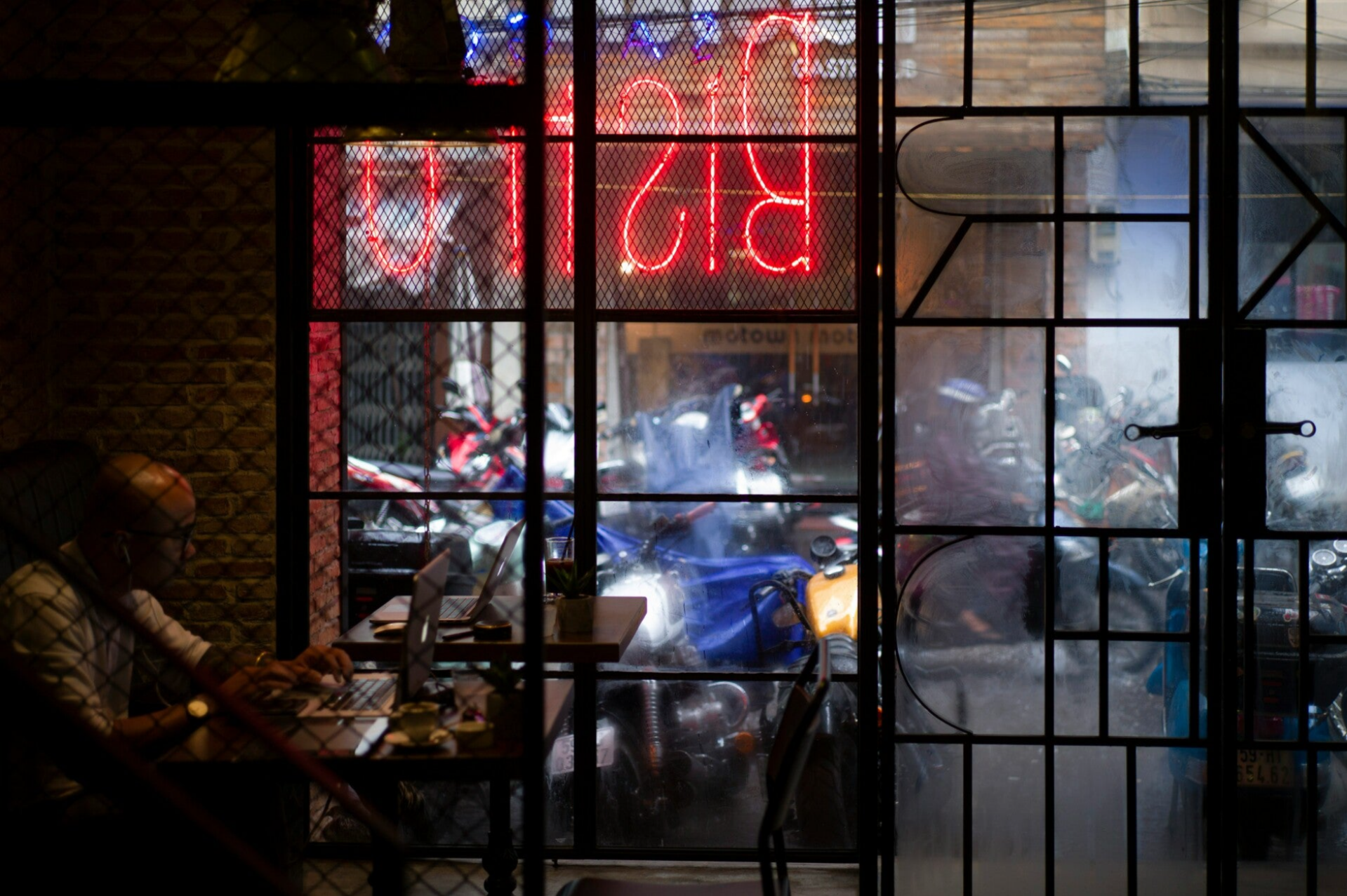 Décor : le comptoir d’un bar, un percolateur, un grand miroir, trois petites tables rondes. Une enseigne bien visible juste au-dessus : Chez Lucette